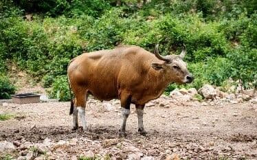 Banteng are herbivorous grazers that have a diverse and adaptable diet. Therefore, they can thrive in various habitats including forests, grasslands, and agricultural lands. Their natural diet consists of grasses, leaves, shoots, and fruits. In scarcity, banteng are also known to consume bark, stems, and woody vegetation.