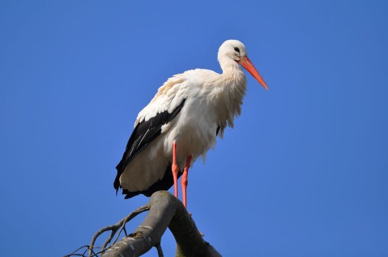 White storks are carnivorous birds that consume various small animals that can be found on land or in shallow water. Their diet includes for example: fish, rodents, crustaceans, insects, chicks and eggs.