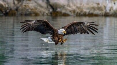 Eagles that primarily eat fish as part of their diet (often more than 80%) are typically found near water sources, such as rivers, lakes, and oceans. They are opportunistic carnivores that feed on a wide variety of fish species, depending on the availability and the size of the eagle. Occasionally, these species also consume other aquatic animals, mammals and other birds.
